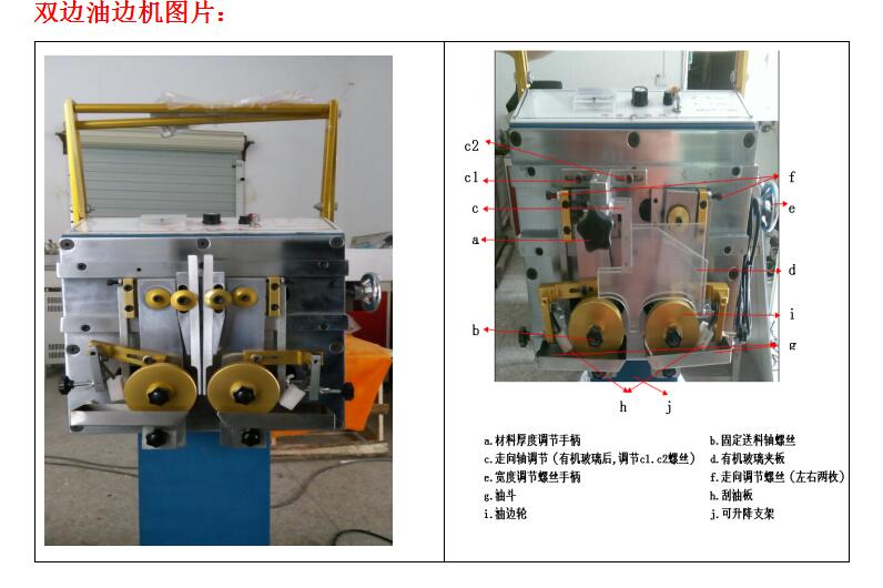 再油帶身,這樣皮帶就不會(huì)邊上的油滾至邊沿,導(dǎo)致重新油邊�?焐仙俣�,從而提高了生產(chǎn)率。此款皮帶雙邊油邊機(jī):速度連續(xù),無級(jí)調(diào)速,操作高度